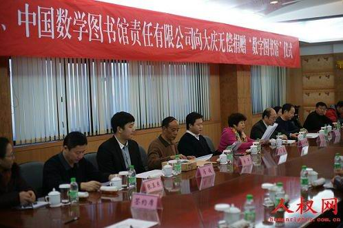 日前,中国人权发展基金会和中国数字图书馆走进大庆,向该市无偿捐赠价值5万元的数字图书馆共计100个,总价值500万元。每个图书馆含6000分钟音视频资源;5000册数字图书;200册期刊。