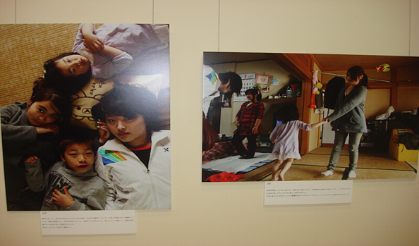展览现场的一块图片展板,其内容反映的是战争后和平年代,中国孩子和日本孩子大家在一起玩耍。