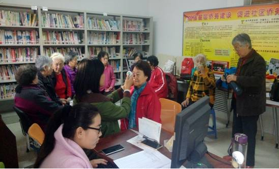 10月16日,公益体检的工作人员在迎泽解放社区服务中心进行体检试,社区工作人员协助配合,小微企业贫困家庭员工高兴的来参与体检活动。