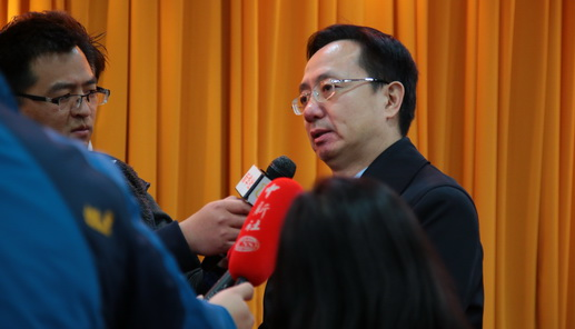 王建林副秘书长在报告会现场接受媒体采访