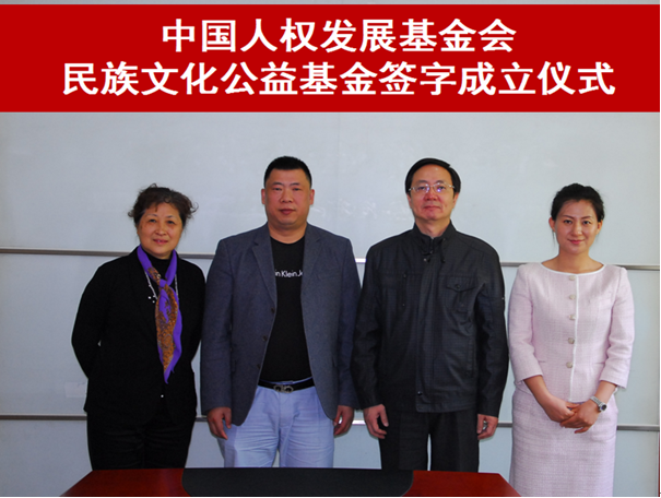 本网讯 4月20日,由中国人权发展基金会与北京星途社国际文化传媒有限公司共同发起的中国人权发展基金会民族文化公益基金签字仪式在北京举行。我会主持工作的副秘书长王建林、基金项目部主任贾会霞和北京星途社国际文化传媒有限公司执行董事钟代明、北京新长者文化传媒有限公司总经理陈方等出席了签字仪式。