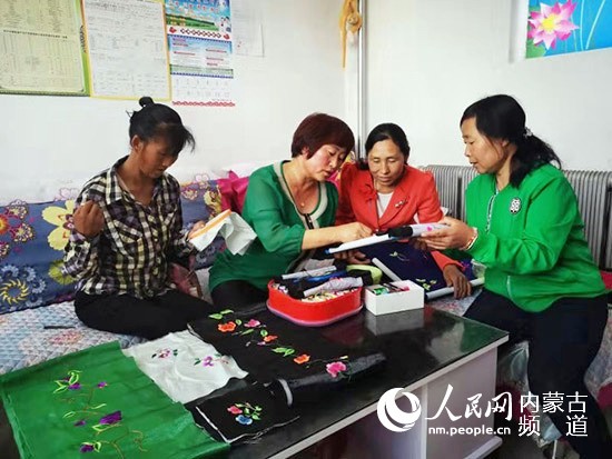 科右中旗的妇女们交流刺绣技巧