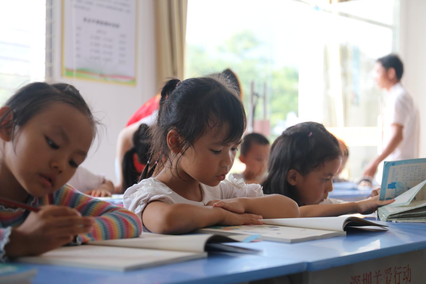 于是,该村的“四点半”课堂就开课了??翁米橹酥驹阜穸游椋刻彀才胖驹附淌Ω涸?ldquo;托管”,向学生免费开放。在这里,他们可以完成课后作业,还可以借阅课外书籍,学习舞蹈、葫芦丝乐器、羽毛球等课程。卢贝贝姐妹通常在这里完成作业后,看会课外书再回家。