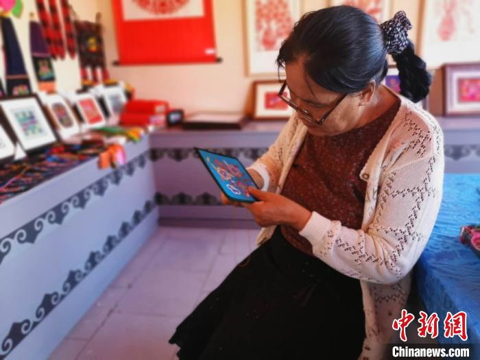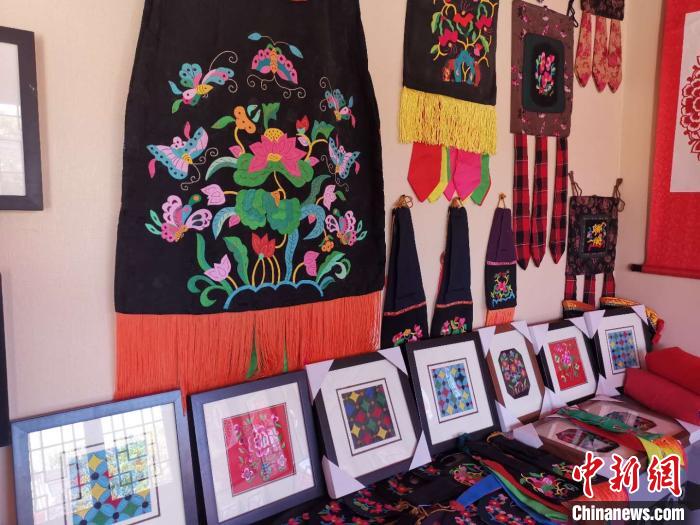 图为正月重现传承百年的刺绣图案?!∥阪?摄