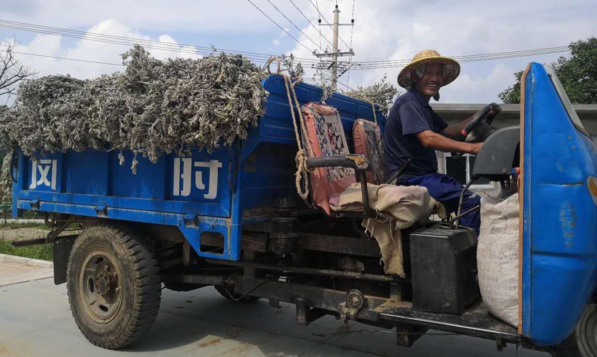 村民驾驶满载艾草的车(资料图片)