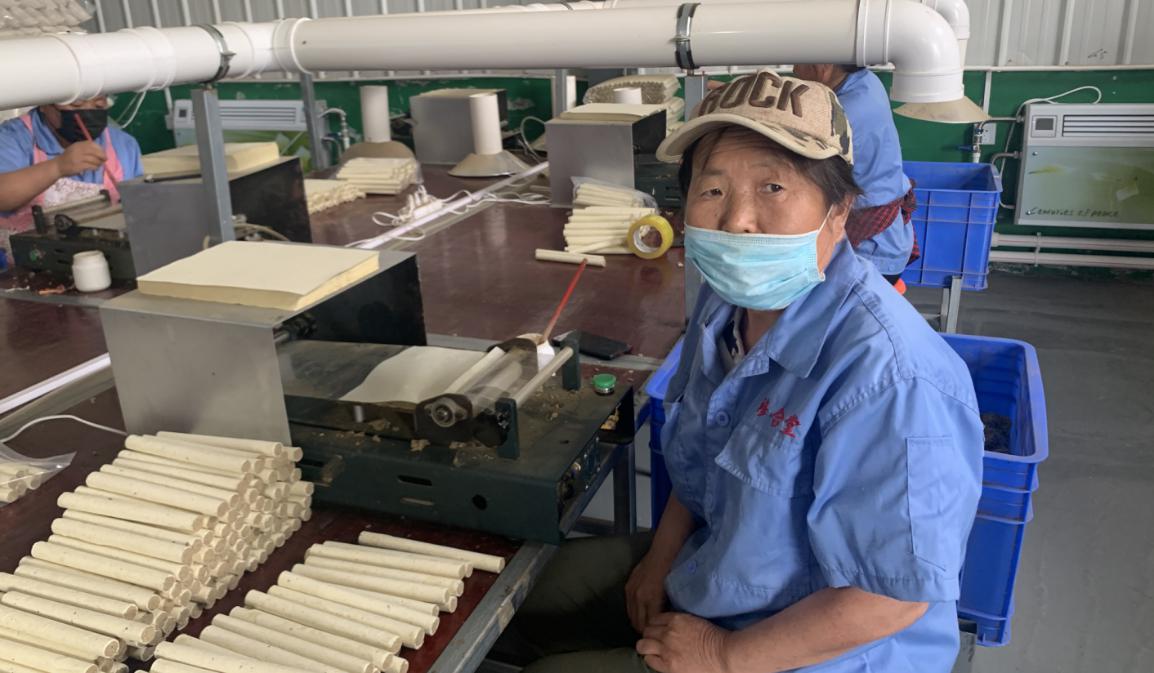 采访中,工厂负责人许江南介绍,其所服务的中医健康产业公司集研发、生产、销售于一体,采用“公司+合作社+农户”的模式,充分调动了百姓参与的积极性。公司分别在代子村和高尔塬村建设了艾草加工扶贫工厂,带动了两个村的100余户贫困户种植艾草。