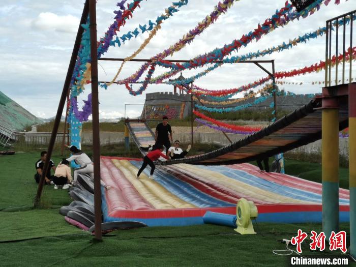 图为游客体验走吊桥。 乌娅娜 摄