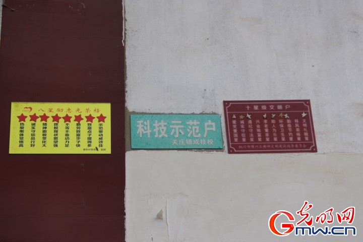 贫困户大门口处张贴“八星励志光荣榜”。光明网记者 徐皓 摄