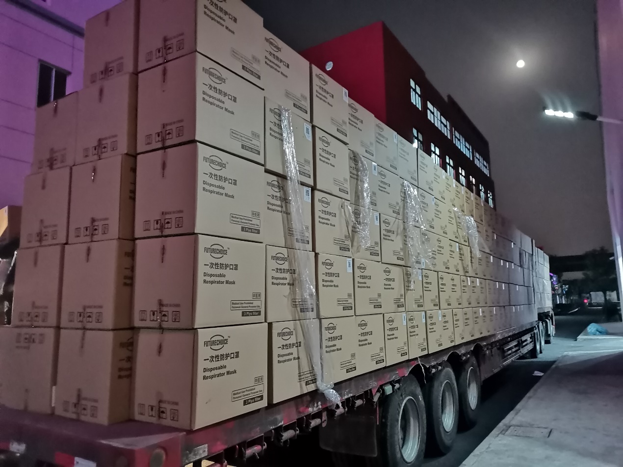 送温暖工作启动以来,上海左耳零公司积极组织生产,迅速推进捐赠口罩的质量检测、包装、运输等事宜,1月28日,1000箱200万只左耳零URUR光触媒口罩装车完毕,连夜发往新疆。