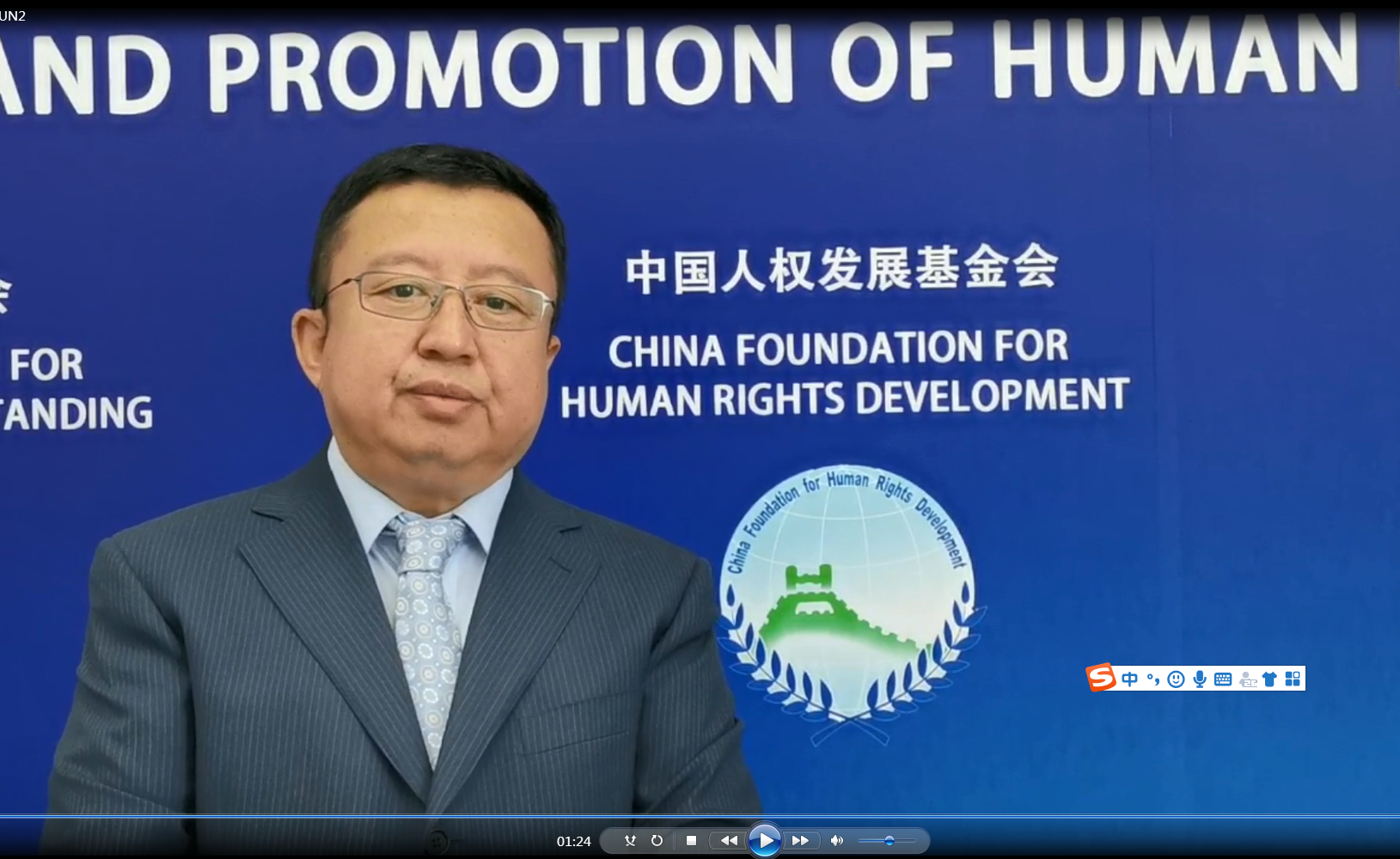 日内瓦时间9月20日,中国人权发展基金会副理事长兼秘书长门立军在与联合国人权理事会民主公平国际秩序问题独立专家互动对话时做视频发言。