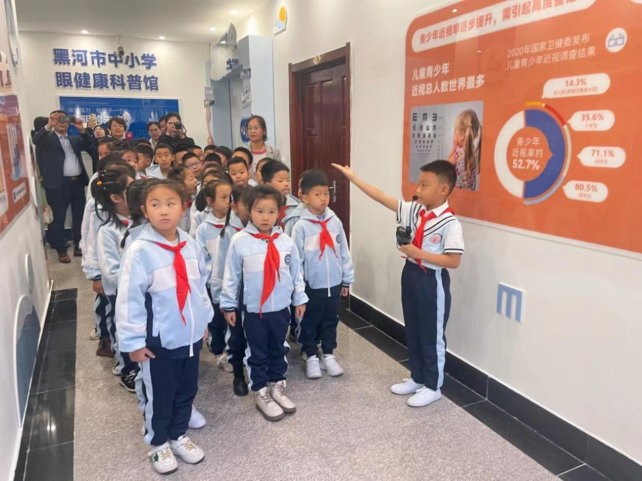 位于黑河中俄青少年活动中心的黑河市首家青少年眼健康科普基地——黑河市中小学眼健康科普馆当日正式开馆。部分学生及家长参观了科普馆,并聆听了温州医科大学附属眼视光医院专家的眼健康科普讲座。
