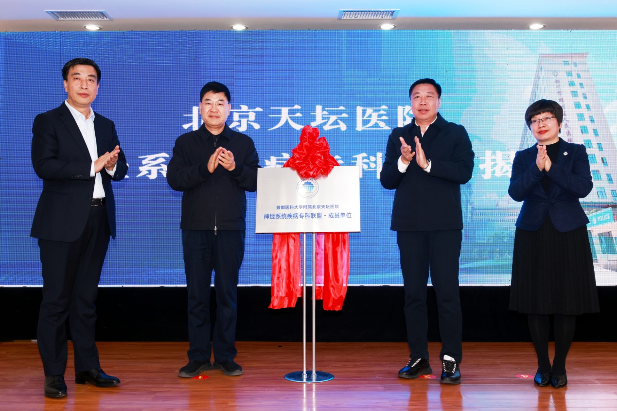 在北京天坛医院神经系统疾病专科联盟挂牌仪式上,中宣部机关党委常务副书记、部巡视办主任宫秉祥,中国人权发展基金会副理事长兼秘书长左锋,北京天坛医院国际医疗部主任任添华和铜川市政府副市长雷颖共同揭牌。任添华现场宣布启动远程医疗平台,并连线北京天坛医院的医疗专家。